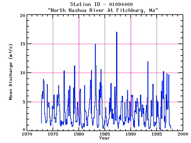 | Stream Discharge (cms) | 01094500 | North Nashua River Near Leominster, Ma |